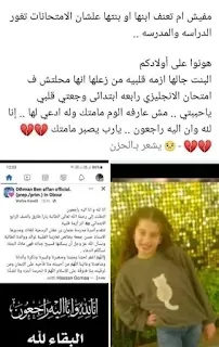 قصة وفاة تلميذة 4 ابتدائي .. ماتت على الملزمة